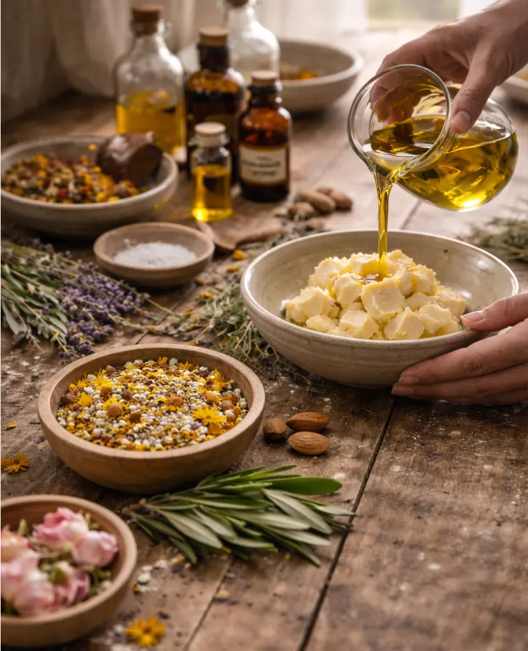 Seleccionamos aceites, plantas y aromas de origen natural, priorizando la calidad y el equilibrio en cada fórmula. Cada ingrediente se elige con atención para ofrecer una experiencia sensorial agradable y respetuosa.