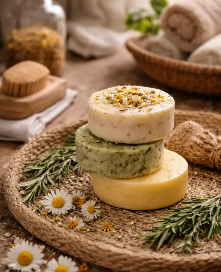 Productos artesanales elaborados con ingredientes de origen natural, pensados para convertir el momento del aseo en un pequeño ritual de bienestar.